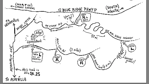 Grab your swimsuit and a picnic! From Sparklebark, Take I-26 W/US-19 N/US-23 N/US-70 W. Exit 19A and merge onto US-25 N/US-70 W toward Marshall. Stay on this road for 21.3 miles until the just before the intersection with Hwy 208. The parking lot is gravel and will be on the left.